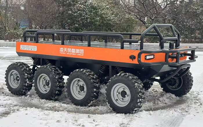 為應對野外山地、叢林、泥濘等非結構化地形,采用8輪與獨立懸掛的輪式底盤,平穩適配崎嶇場地,穩定穿越 陡坡、臺階、沙石地等,彌補輪式機器人在復雜地形的短板。同時可在 - 20℃至 50℃的寬溫區間穩定作業。