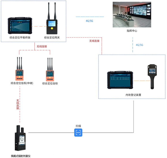 佩戴式輻射劑量監測系統是綜合性的消防救援數據采集、傳輸、指揮及呼救定位搜救系統,集消防員定位、呼救搜救、內攻信息登記、個人輻射劑量監 測等功能于一體,采用自主研發的 MESH 自組網與 4G/5G 雙通道傳輸技術, 提升了信息交互、數據傳輸的可靠性。用于核輻射事故救援或處置現場,個人輻射劑量率和累積劑量監測,具備無線傳輸功能和定位功能系統操作簡單,功能強大,性能優異,實用性強。可以極大程度的保障戰斗人員的人身安全。
