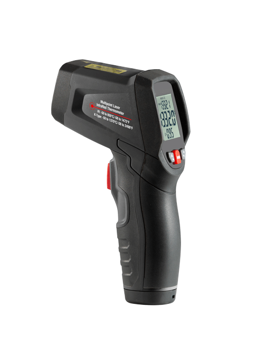 它具有激光瞄準,帶背光源顯示器。最大值,最小值,數據保持,高低溫報警,發射率可調及自動關機功能。該手持式紅外測溫儀可以用來測試傳統的接觸式紅外測溫儀很難測試的物體表面溫度。