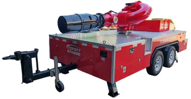大流量拖車消防炮,用中置軸掛車為運載平臺,搭載我司自主研發的大流量電動/手動消防炮,進行遠距大流量的投送滅火劑,適用于石油化工、大型儲油基地、油庫、煉化、建筑、廠房、倉庫等大面積室內或室外火災現場的A、B類火災滅火以及有毒氣體、液體泄漏稀釋和冷卻,及其他消防人員無法靠近的火災或滅火救援處理現場。 適用滅火、冷卻、毒氣疏散等,以及火場的人員保護。
