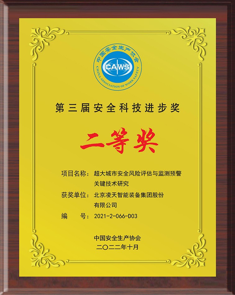 | 獎項類 | 第三屆安全科技進步獎二等獎 | 超大城市安全風險評估與監測預警關鍵技術研究 |