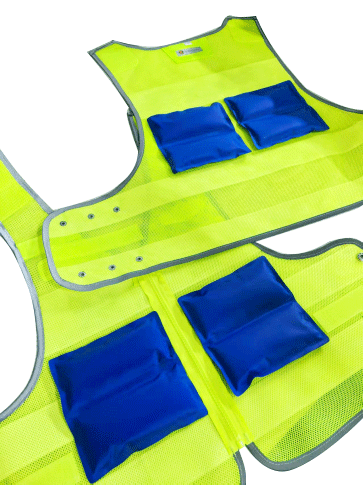 溫控警用背心(低溫型)為前開襟馬甲式樣,開襟用拉鏈拉開,前后身分別具有兩道橫向反光帶;前身胸部左右分別綴釘胸微、警號錦絲搭扣帶絨面、對講機袢、前后身兩側用錦絲搭扣及銅制四合扣連接,針對不同腰圍三檔調節肥瘦;可根據不同身高調節長短