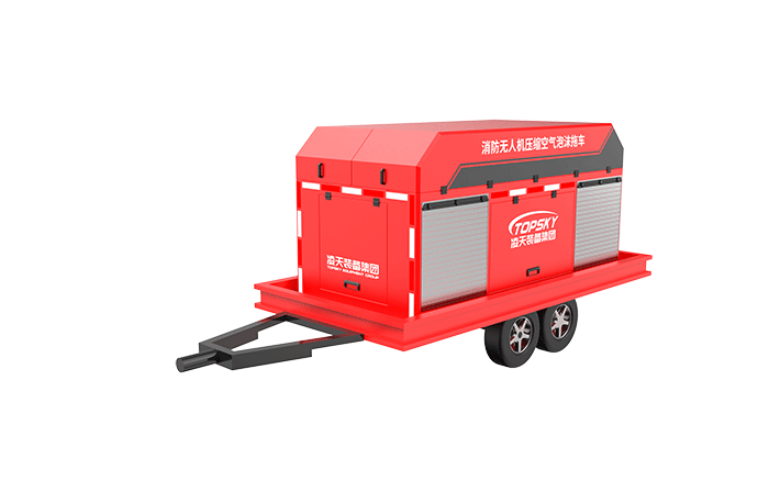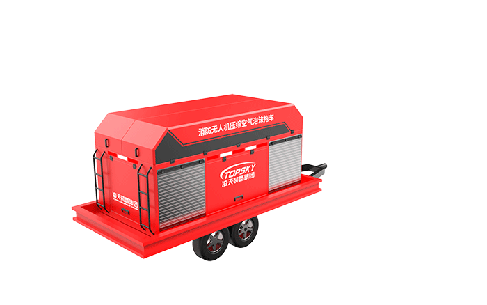 消防無人機(jī)壓縮空氣泡沫拖車,采用中置軸掛車為運(yùn)載平臺(tái),搭載我司自主研發(fā)的水帶系留式重型消防滅火無人機(jī)和壓縮空氣泡沫系統(tǒng)(CAFS),自帶水和泡沫滅火劑,具備高效滅火(高效泡沫隔離、冷卻、窒息)、高空破窗,自動(dòng)避障、展開快速、精準(zhǔn)鎖定火源、多角度控制火點(diǎn)、空中作戰(zhàn)時(shí)間長等特點(diǎn)。機(jī)身采用純碳纖維和航空鋁材料制作而成,減輕機(jī)身自重同時(shí)提高物質(zhì)載重量,該無人機(jī)具備陸空兩棲功能,可以在地面行駛,行走系統(tǒng)可快拆;可噴射水及壓縮空氣泡沫,使用超輕型浮力水帶噴射的壓縮空氣泡沫密度更輕,可以能快速啟動(dòng)升空,拖帶水帶升至高空,系統(tǒng)操作穩(wěn)定性更強(qiáng)。