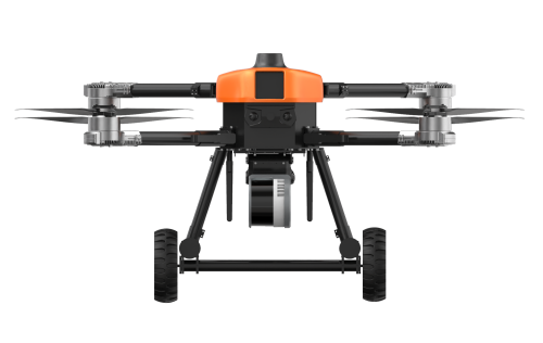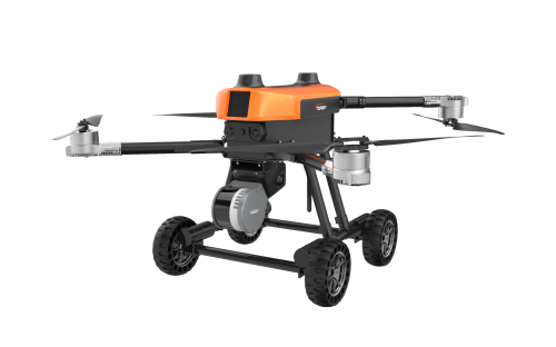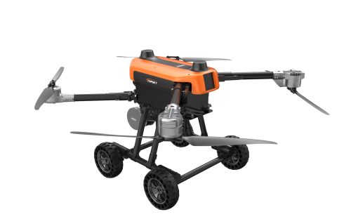 本無人機為北京凌天智能裝備集團研發的陸空兩棲三維偵測建模無人機,采用四旋翼機身設計,載重大,續航長,并且機體折疊標準化負載接口。同時,該無人機具備陸空兩棲功能,可以在地面行駛。